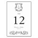 Dessa Vintage Baroque Monogram Vapensköld Bröllop-kort för bordsnummer i klassiskt svartvitt kombinerar elegans och modern sofistikering, med en ornat, blomstrande vapensköld av Renaissance i monogrammet och klassisk elegant i typografi.