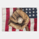 Vintage baseboll, handsken och fladdermus på en vintage amerikansk flagga