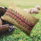 Ett makrofoto av en gammal använd Scuffed-up-grungy-Vintage Baseball med rött stygn. Perfektens gåva till baseball-freaken eller sportfanatiska. Fotografi av Travis L. Lagasse of Flowstone Graphics.