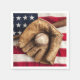 Vintage baseboll, handsken och fladdermus på en vintage amerikansk flagga