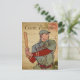 En Fransk vintage stil-design som visar en basebollspelare som byter fladdermus, rosa ros och ord "Carte Postale". vykortet är nytt, men bilden är vintage-inspirerad.