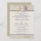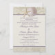 Vintage Beach bröllopsinbjudan med elfenbensbakgrund, Ivory Snöre och mjuk lila text. Sand-dollar och stjärnfisk och det roliga utseendet av "burlap", anpassa text och typsnitt till kostym i stil.