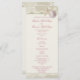 Vintage, elfenbensutskrivet snöre och ett program med bandets bröllopskort med stjärnfisk och sanddollar och accentuerat med rosa text.