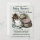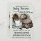 Denna mall för inbjudan till baby shower har en digitalt förbättrad tryckning av en gammal illustration av en modern mus som håller en babymus av Beatrix Potter. Du kan enkelt anpassa texten och ändra bakgrundsfärgen med denna mall.