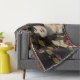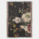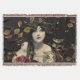 En mycket speciell vintage inspirerade till en täckmantel med en vacker porträtt av en kvinna omgiven av blommor, fåglar, bin, bär och vindswept-löv på en elegant svart bakgrund. Denna unika och varaktiga täckfilt under hela säsongen är mjuk och mycket romantisk. Det är en underbar och tankfull gåva.