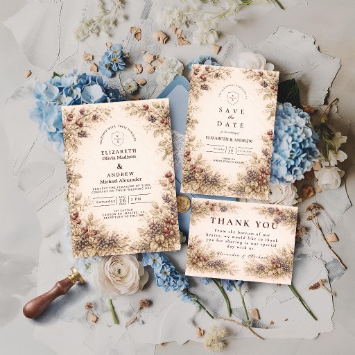 Vintage Berry Botanisk Bröllop Inbjudningar