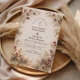 En mjukt detaljerad vintage design med ömtåliga bär, lövverk och dämpade botaniska element arrangerade i en romantisk naturlig ram. De jordnära färgerna och subtila texturerna skapar en varm, organisk atmosfär med en antydan om rustik charm. Perfekt för landsbygd, trädgård eller höstinspirerade firanden, denna design blandar tidlös elegans med en mjuk, naturdriven estetik som känns både intim och förfinad.