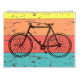 Den här kalendern innehåller vintagens cykelillustrationer med bakgrunden på varje sida.