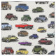 Vintage bil illustrationer av slumpmässig Mönster Tyg