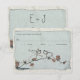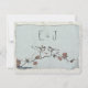Cherry Blommar Chickadee Damask Bröllopbjudanden. Chickadee Love Bird Blue och Mulled Vin Mörk Pinkish Red Light Burgundy. >