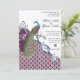 Vintage Birds Navy Deep Raspberry Damask Wedding Inbjudningar
