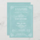 Enkla, eleganta bröllopsinbjudningar med tunna, utsmyckade virvlar som påminner om vintage art deco-design, mot en mjukt papperstexturerad robinäggblå.