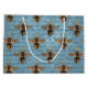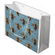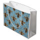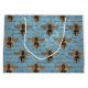 Stora bruna honungsbin med guld krona står framför en vacker vintage blå bakgrund med skrivmaskin.
