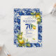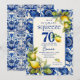 Vintage blå kakel gul citron 70-årsdag inbjudningar
