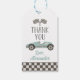 Snabb En Racerbils 1:a Födelsedags tack etiketter med blå retro racerbil.