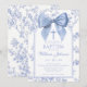 Vintage blå rosett Blommig dop Inbjudningar