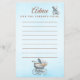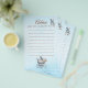 Denna mjuka blå design var inspirerad av klassisk barnkammardekor och tidlös sagobok charm. En skräddare teddybjörn och en vintageinspirerad barnvagn skapar en lugn, elegant känsla - perfekt för att samla innerliga önskningar och söta råd från nära och kära på en baby shower.