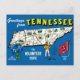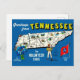 Det är ett färggrant, illustrerat postkortskarta i blått över delstaten Tennessee som återbrukats!
