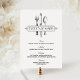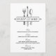 Vintage-inspirerade middagsmenykort har en stil-monogramsformad ram av bruden och brudgummen i namn med dekorativa silvervaror (gaffel, knivar, sked), ett klassiskt svart och vitt färg-schema och fet svart och vitt rand på kortets baksida.