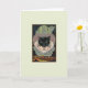 Retro/Vintage Halloween-hälsningskort. Allvarlig tittar svart katt! Vid spöktimmen, håll en klocka från guld runt en kattas nacke och han gör det han har sagt! Hallodell!