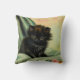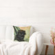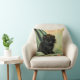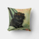 Pillow med en lovvärd svart kattunge! Den grönt ögonkattungen sitter på en filt med en rosa blomma. En vacker gåva till kattälskare och Viktorianska konstentusiaster!