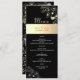 Vintage, botanik, boho, chic, kalligrafi, modern, elegant svart och guld bröllop-meny med gyllene blommigt snöre.