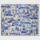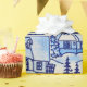 Mycket söt papper i en retro, blå china mönster. En by i land, täckt i snö