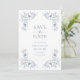 Er berättelse om kärlek förtjänar den bästa inledningen. Bläck upp elegans med de här Vintage Blue Spara datumet som visar blommor från den dammiga blå och vita linjekonsten. Dessa fängslande formgivningar kommer att ge ett bestående intryck på era gäster och bana väg för ett förtjusande firande. Utforska de här inbjudningarnas skönhet och börja lyckligt efter i stil.