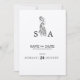 Det här "Spara datum"-kortet är designat för ett bröllop med ett vintage- och elegant-tema. Den har en svart, intrikat blomning eller monogram med initialer ’S’ och ’A’ på vardera sidan. Uttrycket "SPARA DATE" är skrivet i ett stiliserat teckensnitt med en dekorativ linje. Kortets baksida, som är synlig på den lämnat, har en subtil, färglös mönster i en ljusare grått-ton. Den här designen är perfekt för par som uppskattar ett tidlöst, formellt och romantiskt intryck för sitt bröllop-kontor.