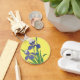 Vintage illustration blommig design med blommande lila iris trädgårdsblommor på en ljusgul bakgrund. Bra design för påsk eller för att fira en vacker vårdag.