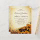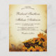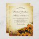 Överraska dina gäster med denna eleganta bröllopsinbjudan som passar alla budgetar och som visar en korg full av solrosor och fjärilar mot en vintage pergamentbakgrund. Lägg bara till dina evenemangsuppgifter i denna lättanvända mall för att göra den till en unik inbjudan.