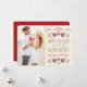 Lägg till din favoritbild och foto på dessa eleganta och vackra julgran och vintertema högtidskort med en formell och vintage retro och antik känsla. Frostiga kottar, akvarell- och målad look rosa, röda och vita julrosor och blommor, snöig ekollon och järnektsbär bildar en vacker vinterkrans. Gyllene detaljer, virvlar och rött band kompletterar den festliga looken. Röd och vit prickig baksida. Kontakta chrissyh@chrissyhstudios.com om du behöver hjälp med att arrangera eller formatera texten på framsidan eller baksidan av detta kort. Konstverk © Chrissy H. Studios, LLC. Alla rättigheter förbehållna.