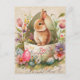 Vintage Blommigt Antique Påsk Rabbit Vykort
