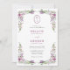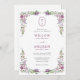 Vintage Blommigt Monogram bröllopsinbjudan. Med kalligrafi-skript för elegant och exekverande, handmålade vattenfärgsgrafik i mjuk lavender, rosa, djup burgundi och pulserande lila, adorberat med delikata vilda blommor, ro och elegant greenery. Perfekt för vår, sommar- och fallbröllop, varje föremål i denna samling som viskar kärlek, lockbete och tidlös romantik som fastställer stadiet för ert oförglömliga firande. Låt naturens skönhet och vintagens charm härliga din speciella dag med vår fängslande samling.
