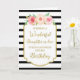 Födelsedagskort för dotter i lag med vintagens rosa och persikofärgade blommor, svart och vitt rand, guld rustic ram, rustik handskriven stil-text och tankfull vers.