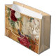 Ett vackert skrapbokshus av blommigt rosa, burgundi och vit ros mot en dammbrun bakgrund som är infunderad med blomstrande banderoller, en fasasant fågel och faux glitter. Ett kursivt skript för kalligrafi i brev i finare visas bakom fågeln och det övergripande utseendet är vintage eller antika. Den här halvtidsbilden är idealisk för en födelsedag, årsdag, bröllop eller milstolpe firande.