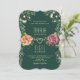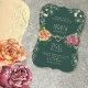 Träd in i en värld av tidlös romantik med vår eleganta, moderna, boho-bröllopsinbjudan i vintage-chic smaragdgrönt. Med ett romantiskt guldlina-hjärta, ömtåliga akvarell-persikorosa rosor och invecklad förgylld blomsterbroderi, utstrålar denna inbjudan sofistikering och charm. Den enkla kalligrafiska skriften tillför en touch av elegans och sätter den perfekta tonen för din speciella dag. Bjud in dina gäster att dela i magin av din kärlekshistoria med denna oförglömliga inbjudan.