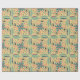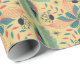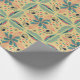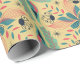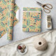 Bilden visar dekorativt inpackningspapper med ett vintage blomster- och geometriskt mönster i turkos-, persika- och gröna nyanser. Ett ark är upprullat; ett annat ligger platt.
