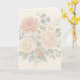 Romantiskt vintage blomsterkort med mjuka pastellfärgade blommor på en linnebakgrund – perfekt för alla tillfällen.
