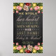 13,5" x 23" Vintage blomsterdekorerad svart tavla för välkomstskylt till bröllop; Han stal hennes hjärta, så i morgon stjäl hon hans efternamn!