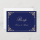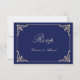 Vintage Nikah Islamic Muslim Bröllop OSA Card. Ett svarskort från elegantens marinblå osa som du kan skicka till din familj och dina vänner för att informera dem om när din Nikah-ceremoni kommer att äga rum. Det finns en löv i guld rulla i hörnet av ram. Redigera namn, datum, plats på bakkortet så att du kan byta namn på framsidan av kortet. Du kan också använda detta kort för andra ceremonier och även för Islamiska tillfälle.