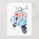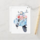 Vintage blue scooter med blommor vykort