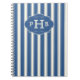 Timeless and refined, this personalized notebook features a vintage blue and off-white striped design with a custom three-letter monogram nestled inside an elegant label. The classic format showcases your last name initial prominently in the center, flanked by your first and middle initials—perfect for professionals, students, or anyone who appreciates tailored design with heritage flair. Ideal for journaling, planning, or gifting, this notebook adds a personalized touch to everyday essentials. All text and colors can be customized to suit your style.