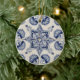 Vintage Blue White Geometric Flower Mönster Julgransprydnad Keramik