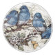 En vacker, söt, vintage illustration av bluebirds sitta på blommar träd gren. I färger av blått, kräm och rosa.