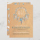 vintage bohemiska bröllopsinbjudningar med tribal fjädrar och drömfångare krans