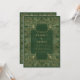 Denna inbjudan från elegant bröllop innehåller en ornitad vintage guld ram i en nödsituation med grönt som förebild för ett antikt bok-täcke. Anpassa guld-färgaden med namn och bröllop. Utformningen av ram upprepas på kortets baksida.