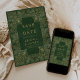Med det här elegant bröllop Spara datumkortet får du en vintage guld ram i i en nödlidande grönt som påminner om ett omslag i vintage bok. Anpassa guld-färgad-texten i snyggt typsnitt och lägg till bröllop webbplats-URL:en på baksidan.