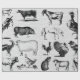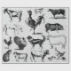 En kraftig kollage av vintage boskap på en vit/ grått- tonad texturerad utseende. En underbar utformning för älskare i land. De svarta och vita illustrationerna av boskap är får, får, get, jordbrukskatt, ko, gris, kalkoner, kycklingar och mycket annat. En perfekt, rustik tematisk design för ditt hem eller din gåva till någon speciell.