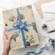 Vintage botanical floral pattern wrapping paper featuring soft cream and beige flowers with detailed stems, leaves, and delicate script accents on an aged neutral background. Elegant and timeless with a rustic floral aesthetic, this seamless design is ideal for cottagecore lovers, garden enthusiasts, vintage style fans, and botanical art admirers.